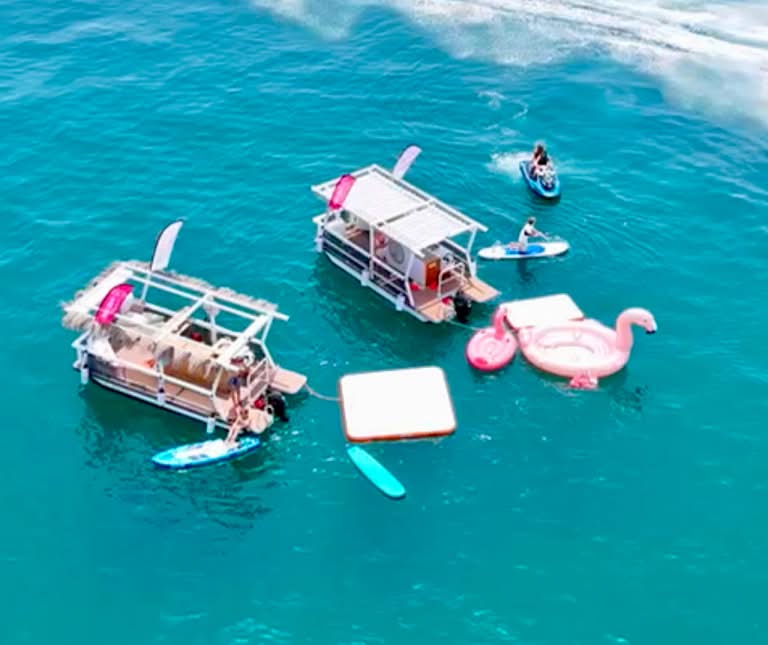To visit the BarcoBar you’ll need a means of transportation; like a jet-ski, boat, paddle board or anything else that floats because swimming will be too far. For the ones who made it, a freshly made cocktail, or another cooling drink will be awaiting for you. Just dock your ‘floaty’ onto the bar island and hop aboard. If it’s busy we might ask you to latch onto the boat, but stay on your float for a little while longer….we’ll still be serving you drinks! Soon there will be a space for you at the bar too! Contact us in case you don’t have transport. We know where to hire a surf board, kayak or jet-ski closeby or we can organise a sea-taxi service for you.